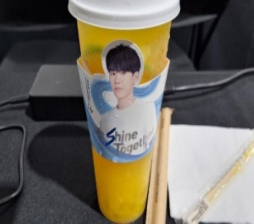 TheShy送出了他定制口味的奶茶,Tarzan也给媒体带了零食