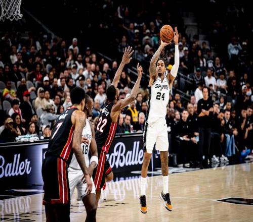 NBA常规赛继续进行,马刺坐镇主场与热火展开对决。圣安东尼奥豪取4连胜,战绩高居西部第2,本赛季强势崛起。福克斯、索汉、科内特、奥利尼克、沃特斯继续伤停,马刺沿用了文班亚马、卡斯尔、瓦塞尔、巴恩斯与尚帕尼的首发五虎。迈阿密实现了3连胜,实力不容被低估。此役,诺曼鲍威尔、泰勒希罗、罗齐尔伤停,斯波尔斯特拉的首发五虎是阿德巴约、威金斯、拉松、韦尔与米切尔。文班亚马与阿德巴约两大强力内线的较量,是此役的最大看点。